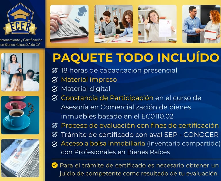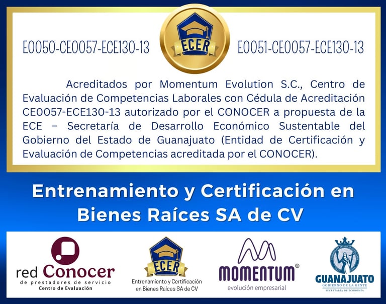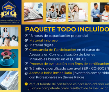 Curso con apego a las Leyes Mexicanas y basado en el Estándar de Competencia Laboral EC011.02 "Asesoría en Comercialización de Bienes Inmuebles"