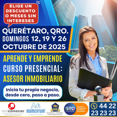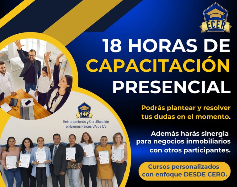 Si quieres formarte como Asesor Inmobiliario y aprender cómo se venden y rentan inmuebles, cómo cerrar un negocio, cómo se hacen los trámites y cómo funciona el negocio de los Bienes Raíces, inscríbete en este curso donde: